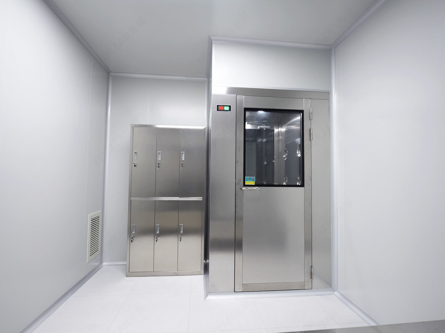 3,进入无尘净化车间之前先进入缓冲区,缓冲区门安装电子互锁,更衣处放置洁净储衣柜,空气清新机。