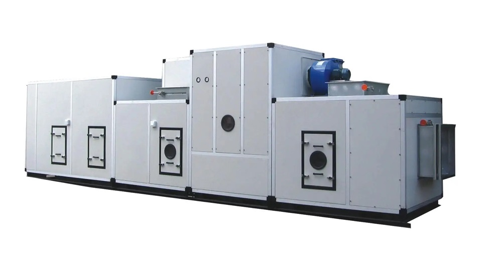 空调机组包含以下功能:若风网、袋式初效过滤器、袋式中效过逃器、加热器、表冷器、加湿器、风机(带电动机)、中效出风过滤器、出风风网(带软接头)。调试日的足检查机组箱体的酒风事以及风机电动机运行时的风量和全压。风量测试之前,现场应提供 380V 的电力接线,且机组的变類器已经安装到位:在漏风率测试之前,机组的所有风网必须与风管断开。