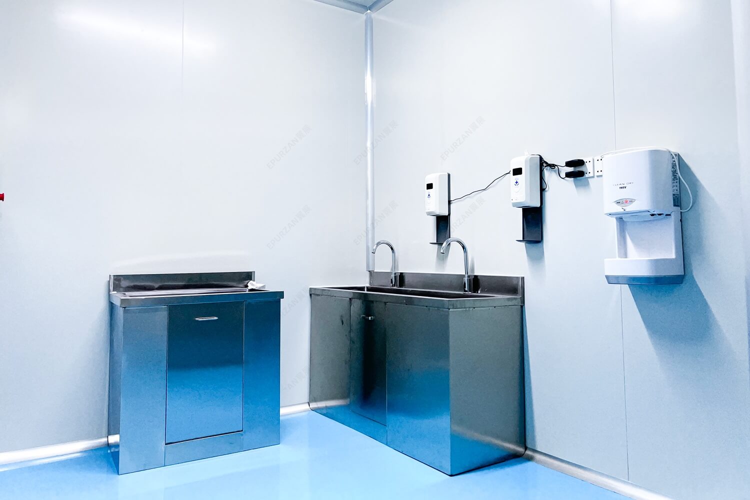 ②洁净室房间的面积在 100m° 以内的防静电 PVC 地板或防静电自流坪设-一个接线端子。每增加100m° 的防静电PVC 地板或防静电自流坪,则相应增设 1~2 个接地端子。小于 100m° 的房间单独设置1个接地端子。